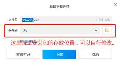 1、首先在官网点击“2.0电脑端下载”按钮,会弹出下载安装包的提示界面,该界面中的“保存到”指的是下载的安装包会存在在哪里,我们可以指定一个存储位置后点击“下载”,然后耐心等待下载完成即可。