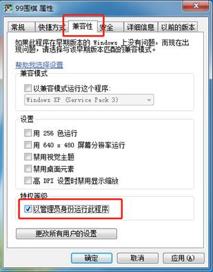 接着在属性界面中的“兼容性”页面内,勾选“以管理员身份运行此程序”后,点击“确定”或“应用”即可;好了,重新再登录一次试一试吧。