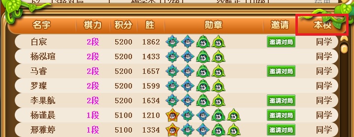 此时点击某个同学名字后面的“邀请对局”,即可向该同学发起对局邀请。