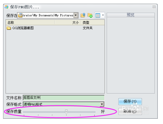 8、保存配置,保存配置的对话框设置好保存的文件名和质量,注意调整