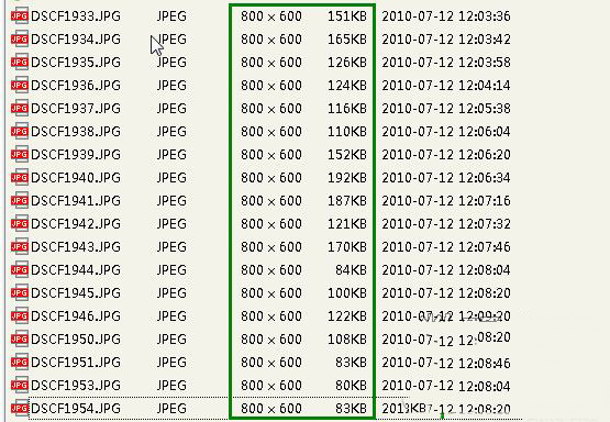 1、打开左边的文件夹列表,选择要进行批量压缩图片的文件夹。可以看出,数码相机拍出来的原文件分辨率和容量都比较大。