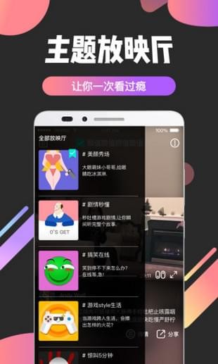 1.海量游戏视频,炫酷操作刷不停2.主题放映厅,让你一次看过瘾