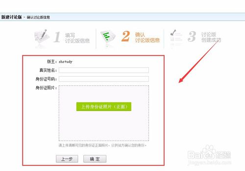 点击“提交”按钮后,会进入第二个步骤中,在此窗口中输入身份证号与身份证图片,并再点击下方的“确定”按钮。