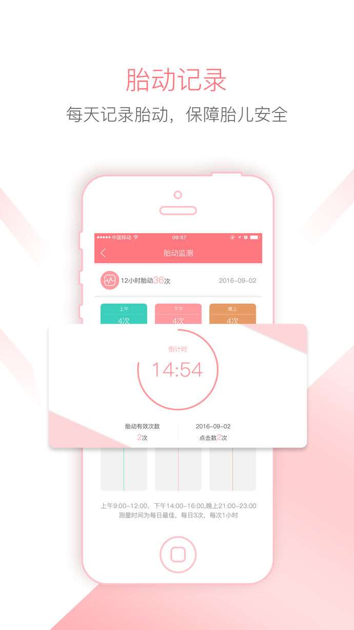 孕期记录:自动监测胎心、宫缩数据,进行数据智能分析,胎监报告可直接提交给医院专家进行报告解读;手动记录胎动和体重腹围,及时掌控宝宝数据。