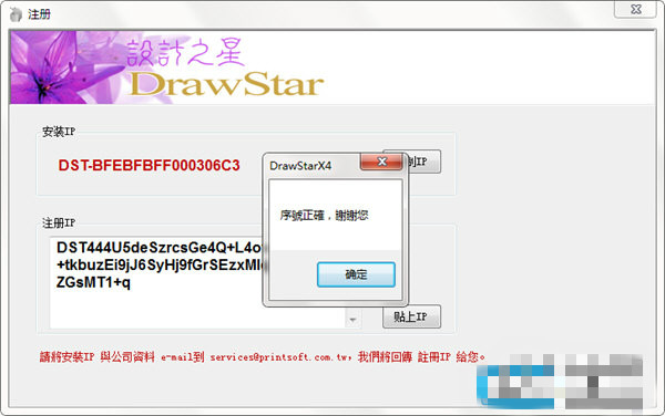 5、粘贴注册IP到软件注册界面点击注册,稍等片刻即可获得序号正确的提示,如上图。