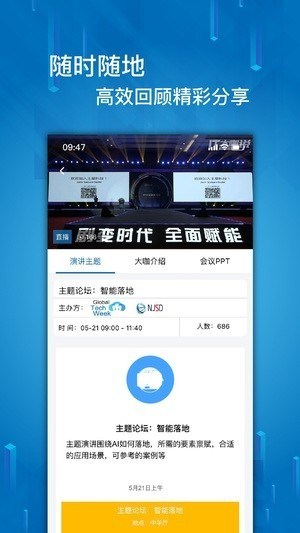 1、线下峰会在线看,随时随地回顾。2、在线直播,桌面共享,语音互动。