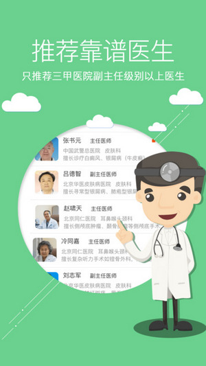1.名医推荐:整合北京名院名医;无需苦心甄别,一步直达好医生。2.预约挂号:囊括多科室医生专家资源;避开排队加价,一键轻松挂到稀缺号源。