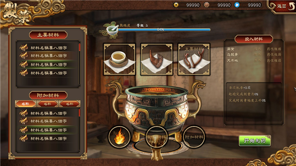 前往三大主线重要城市-「洛阳」可开启的生产系统,玩家可以放入随机药材进行制药,透过简单的小游戏来提高药品的质量。
