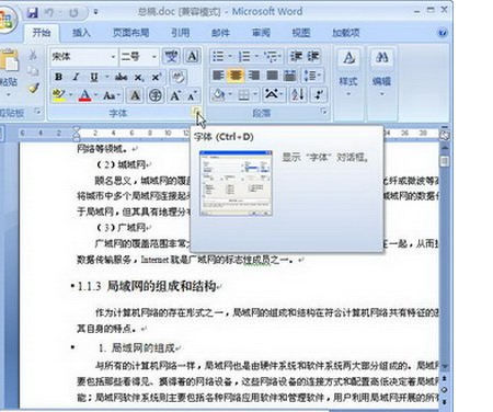 第1步,打开Word2007文档窗口,选中需要设置字体效果的文本块。然后在“开始”功能区的“字体”分组中单击显示字体对话框按钮