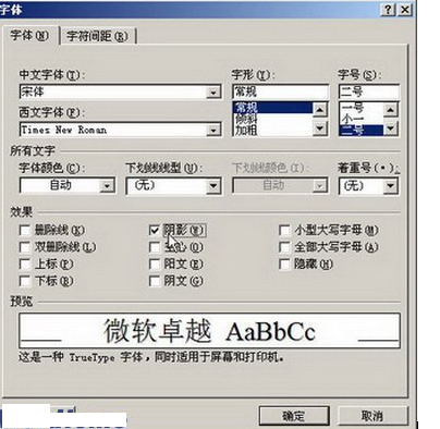 第2步,在打开的“字体”对话框中,“效果”区域显示出Word2007支持的字体效果。选中相应效果的复选框,并单击“确定”按钮即可