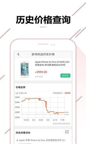 比价购物助手app展示商品历史价格曲线,一键查询商品最低价优惠特价购买,识别虚假打折促销。