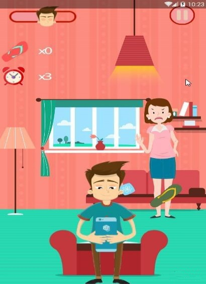 飞行的凉鞋是一款趣味休闲的益智敏捷冒险游戏!完美的暑假时期让你天天来在家中不肯出去,而且每天都是吃了睡睡了吃也不做家务,还整天拿着手机不停的玩一会,妈妈实在是忍无可忍了。并将拖鞋扔向你,但是你目前正在玩游戏的关键时刻,不能因为妈妈扔过来的拖鞋而导致游戏结束,所以你需要通过左右晃动来改变你的座椅位置并躲避扔过来的凉鞋,但是凉鞋扔过来是随机的哦,你有把握全部躲避吗。