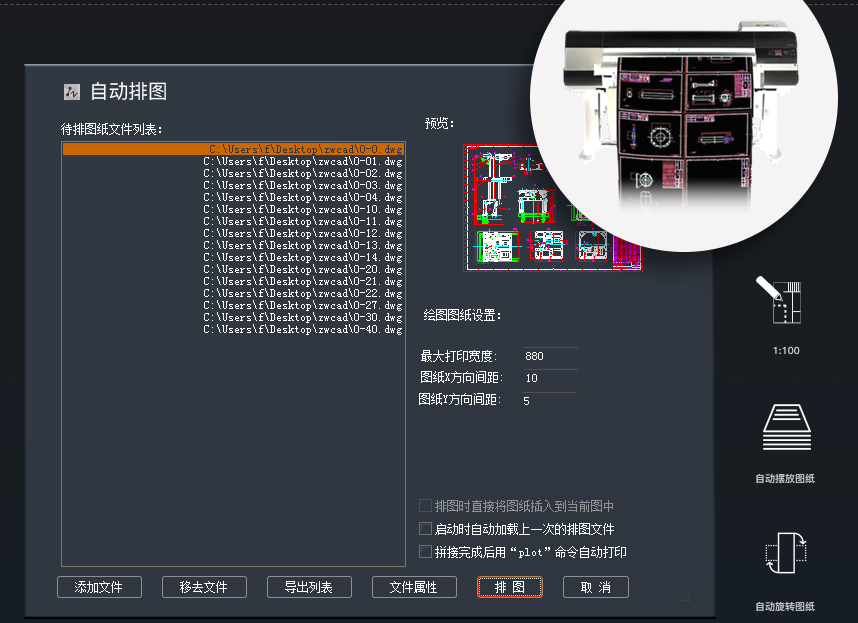 自动识别图纸比例、自动摆放图纸、自动旋转图纸,成倍提高大幅面绘图仪效率及纸张利用率