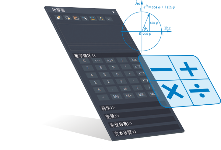 内置计算器工具,包含基础算术运算、几何运算、科学和工程等相关运算,用户绘图过程中随时可选取相应参数进行专业计算。