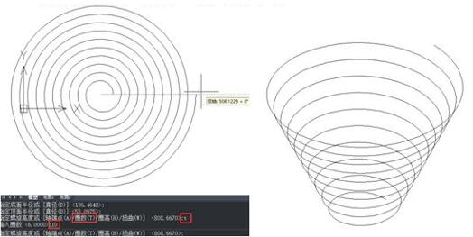 1、启动命令后,默认圈数为最近一次修改过的数值,扭曲顺序是逆时针。设计师需要在绘图区域指定底面的圆心。