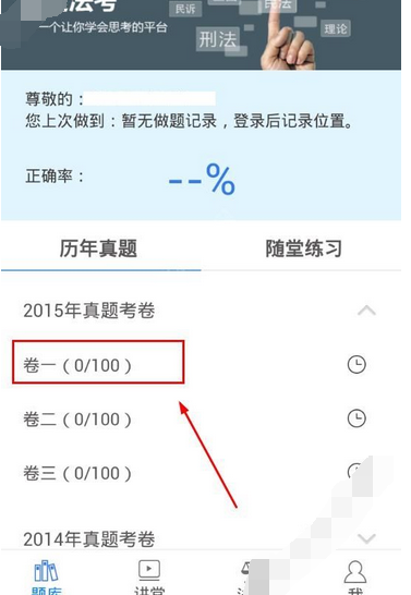 1、打开软件,在题库界面,为你提供了海量的题库,习题让你随堂联系的。