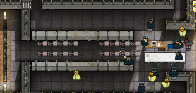 这样好处是节省空间,并且减少wei禁品来源:你都跑到路上了肯定优先逃跑,还要wei禁品干什么?另外除非在课程里安排了:守卫电击枪-长官、木工学徒-工头、精神指导/行为疗法-心理医生,使用办公室的人是没必要进入监狱区的。(不过上不上课好像在脱逃没什么影响……)