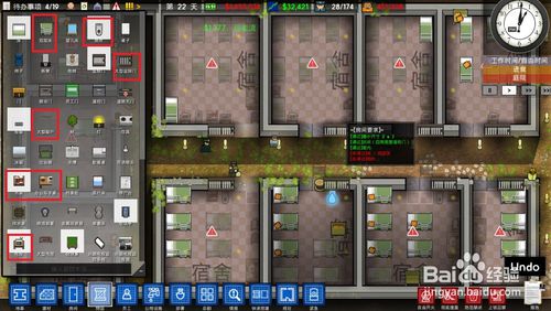 最好提前先规划好监狱尤其是水电监狱到外界不应有太多出口一到两个为宜先将迫切的Cellkitchencanteenshower建起来但注意之后扩充与发展