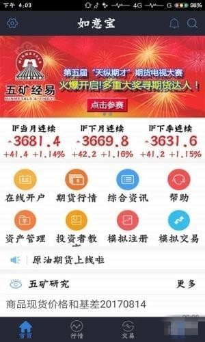 如意宝app是五矿经易期货有限公司的官方移动交易软件,功能齐全,性能稳定,为广大投资者提供丰富便捷的交易体验。是集合了在线开户、交易、模拟交易、期货分析及资讯、资产管理等一系列功能于一体的期货软件,让您随时随地实现财富管理!