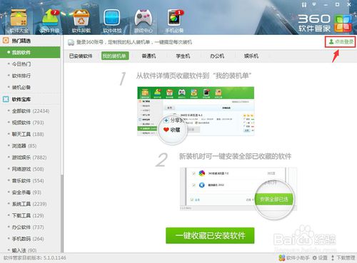在软件管家界面右上角点击【登陆】按钮,输入360账户和密码后登陆,如图所示: