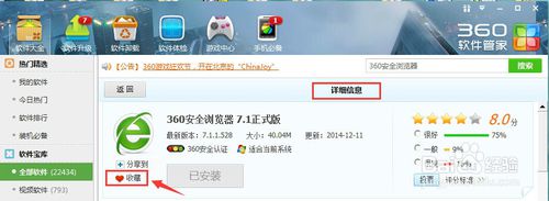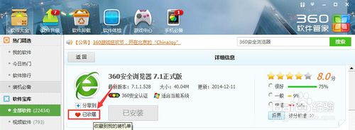 在软件详细信息界面中点击【收藏】按钮,【收藏】就会变成【已收藏】,如图所示: