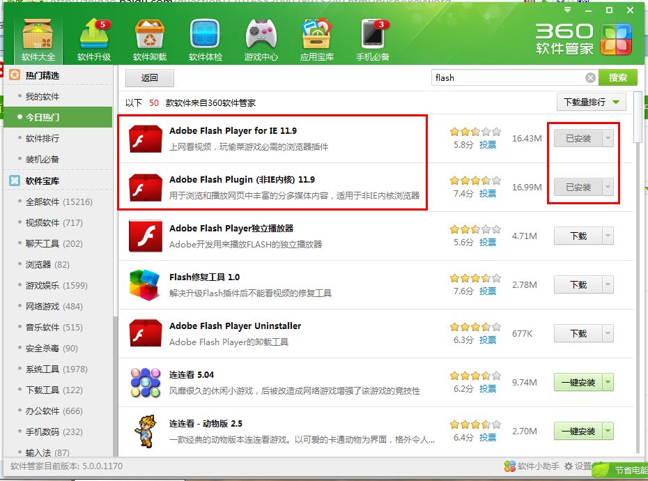 1.装机必备由360工作人员检测、网友评选得出,这些软件具有很大的用途,如FlashPlayer,具有垄断地位,用户必须安装,否则无法看网络视频,不能玩在线游戏。