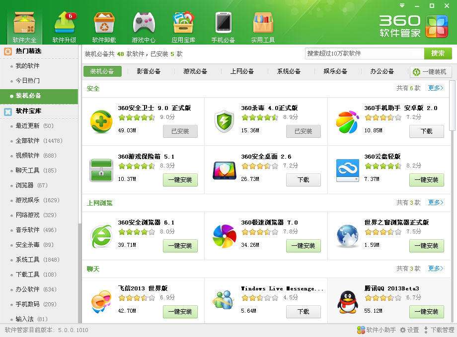 360软件管家独立版是一款专为用户打造了一站式下载安装软件的平台。软件宝库收录的每款软件都经过人工安装验证,通过卡巴、NOD32、360杀毒等国内外知名杀软的联合查杀,确保无毒、无木马,用户尽可放心下载。软件升级能第一时间提醒用户下载升级软件新版本,大大节省寻找和下载软件新版本的时间。强力卸载能帮用户彻底清扫软件安装后在注册表及相关文件夹里产生的残留信息,极大降低了电脑空间占用。开机加速不仅为用户清晰展现出全部开机启动程序,而且对于是否开机启动都给出专业建议,用户可自行设置加快开机速度。设置默认软件等更多全新功能,还在为用户提供着便利,创造着惊喜。