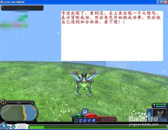 3、如果你打算在这阶段一路杀过去,那就没什么好说的,杀就是了,简单模式下很容易就杀过这一阶段。如果你打算在这一阶段不杀的话,那就要与别的生物唱唱跳跳了。与别的生物唱唱跳跳是有技巧的,那就是每回等别的生物先动,看他们在干嘛,然后你就学他们干嘛(不外唱、跳、迷、势四种),这样成功讨好别的生物的机率大了很多很多。