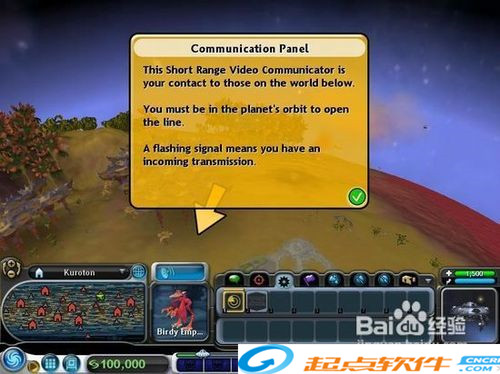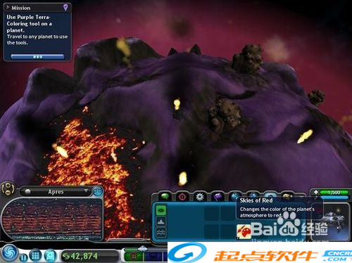 与外星生命进行交涉。从外星人处也可获得任务,且报酬十分丰厚。这就是一个消灭生物的任务。为星球涂色的任务。这是个可选的任务,但有一点需要注意,涂色道具共有三种,在道具窗口的左侧有三个分别为大气、山岭、海洋的图标,分别对应三种内容的涂色,要全部涂色之后才算完成任务。