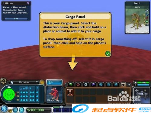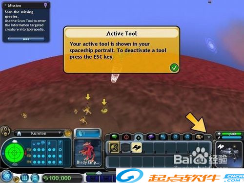 探索失落物种。下方的工具栏中,雷达是一个重要道具,一般情况下不需要将其关闭,它会自动探索任务关键对象并在飞船下方指出正确方向,且前期能在目标对象头上以箭头显示。同时,如果飞船接近目标的话,雷达的声音也会变得急促。选中第三项的探索工具,用鼠标左键点击星球上的动植物进行探索。