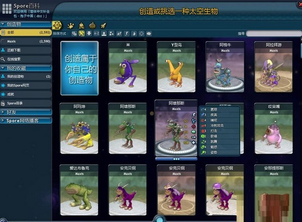 evoadvantage 创建新生物时输入可从Sporepedia中任选一种动物