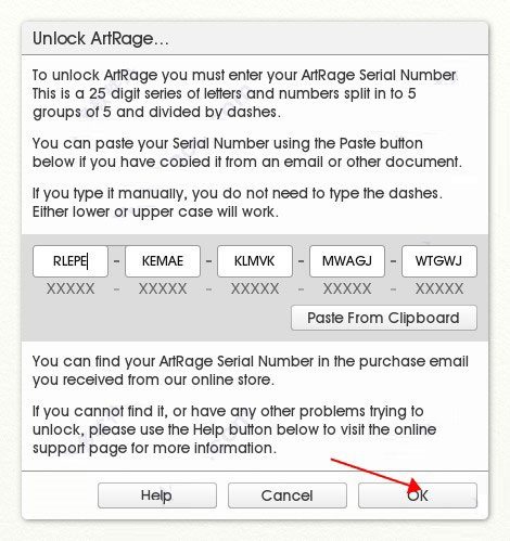 2、运行软件,如下图所示,将注册码文本中的内容RLEPE-KEMAE-KLMVK-MWAGJ-WTGWJ复制到窗口中,点击ok