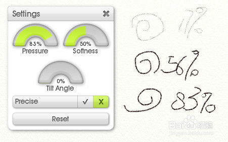 tllt angle的范围最好在50%以下,过了70%就如同将笔几乎平贴画的效果。