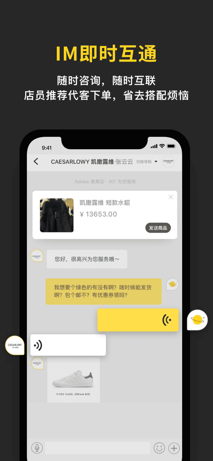 “即市”通过奥特莱斯特有的名品商家,将最新一手的资讯、优质的商品和商场活动推荐给消费者。消费者也能通过即时聊天工具与真实店员咨询沟通、选购商品。
