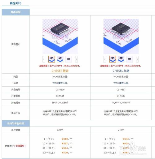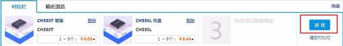 点击对比按钮,添加到对比框内,并找到其他需要的元器件类型,同样点击对比按钮,加入到对比框。