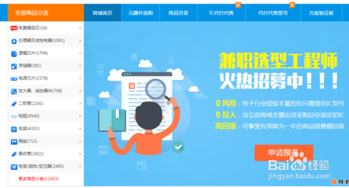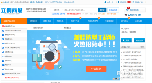 进入商城主界面,在界面左边找到类型上“全部商品分类”列表,从中找到你想要的元器件类别