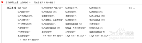 比如搜索贴片电阻,则会弹出相关的搜索信息,在弹出的界面中找到你想要的类型