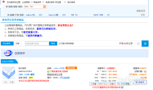 找齐你需要购买的电子元器件类型,以及选择好你需要购买的数量,一般在商城中都会有显示当前具体的库存数量。
