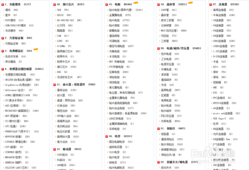 如果没有找到则点击列表中最后一行的“更多商品分类按钮”,弹出所有的商品分类信息,在如下图中,找到你想要的元器件类型。