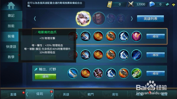 第一个装备出血爪,+70物理攻击还有20%的物理吸血