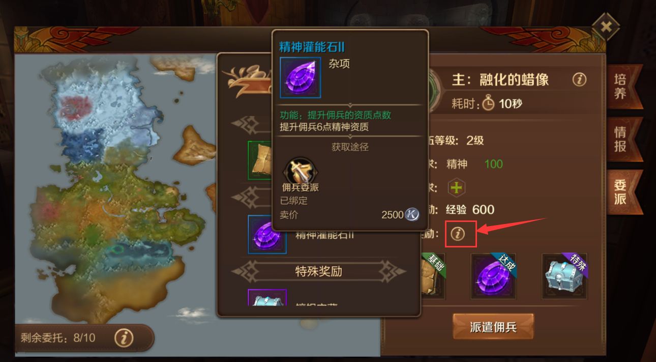 顾名思义,委派佣兵进行任务,是佣兵系统的核心,也就是宝箱的一大出处。