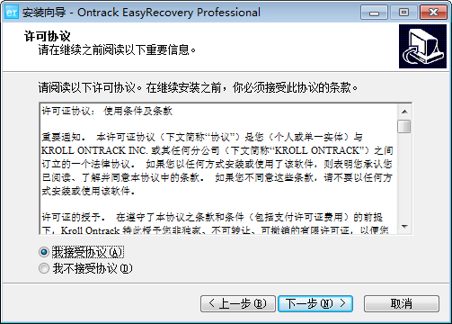 1.双击EasyRecovery安装包,启动安装向导开始安装,单击“下一步”继续.