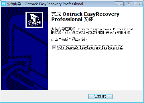 7.等待安装完成,如要完成安装后运行EasyRecovery,可勾选“运行Ontrack EasyRecovery Professional”,点击“完成”退出安装..