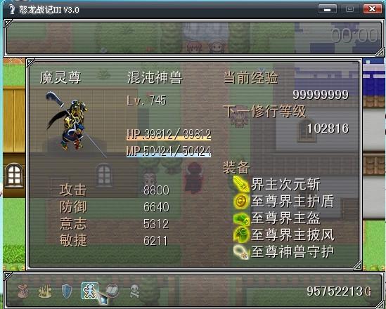 .好了,经过舟车劳顿,总算又从沙城走到了菲力水镇,买齐完全圣灵药,,去神之禁地刷魔斗士转职证书吧(照开始那个方法,顶多30分钟),刷到了转职证书,立刻去转职,然后立刻升到40级以上(老方法),让怒龙学会蓄力和振奋这两个状态补充,(这时候公主也学会了超级星光了吧,打怪的时候,BB和公主打,BB用终极连续攻击,公主用超级星光,怒龙分别给BB和公主蓄力和振奋,打一下怪起码5万血)。有了这些条件,再买齐完全圣灵药和避怪幅,去神之禁地打炎魔神BOSS吧,炎魔神BOSS可以出5星级炎魔神宠物蛋和神器混沌怒龙斩,如果刷到更好的宠物和更好的武器,就换下来吧。炎魔神加点先加意志,意志满了再加攻击,用雷霆万钧技能至少能打BOSS八到十万的血。(虽然刷到炎魔神蛋的几率很小,不过我还是是刷一次炎魔神就刷到了它的蛋,这个要看RP)不过这时候及时没有刷出炎魔神宠物蛋也没关系,后面有更好的宠物等着你。