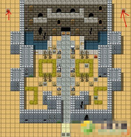在荒漠的勇者广场遗迹,左上角右上角分别有一个箱子