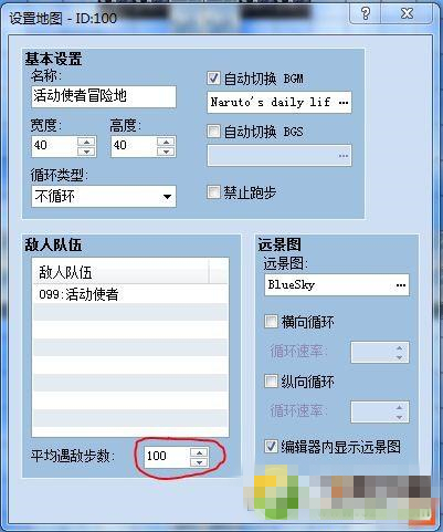 在地图属性窗口,红圈所圈的地方,你平均要走100步才能遇到一次活动使者!