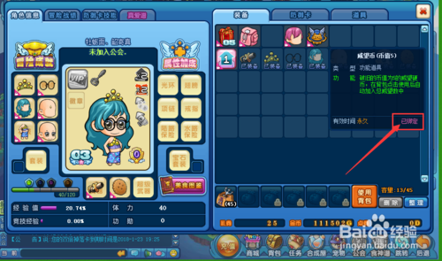 1、首先,我们登录到游戏中,开启我们的背包,将鼠标放置到我们的道具上面,就会弹出道具详情,在详情页即可看到道具是否绑定,绑定的道具我们只能够使用不能够删除。