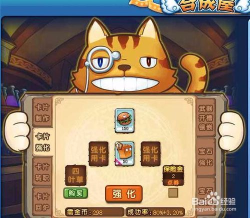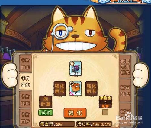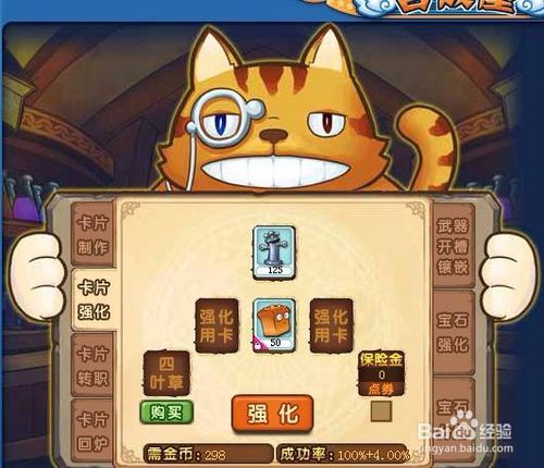 一张被强化卡片,一张1星用卡,一张2星用卡,一张1星四叶草。