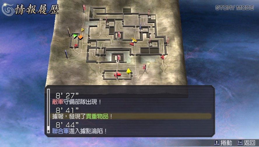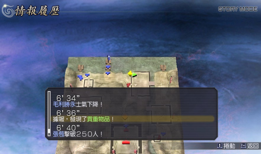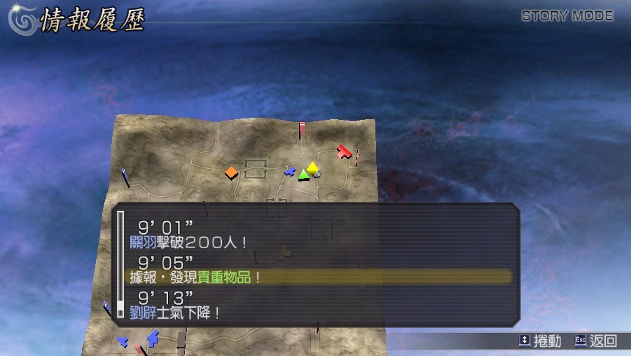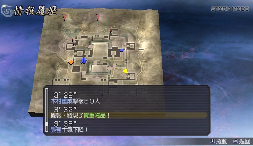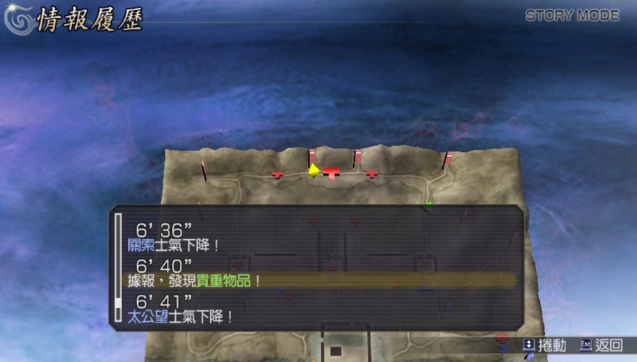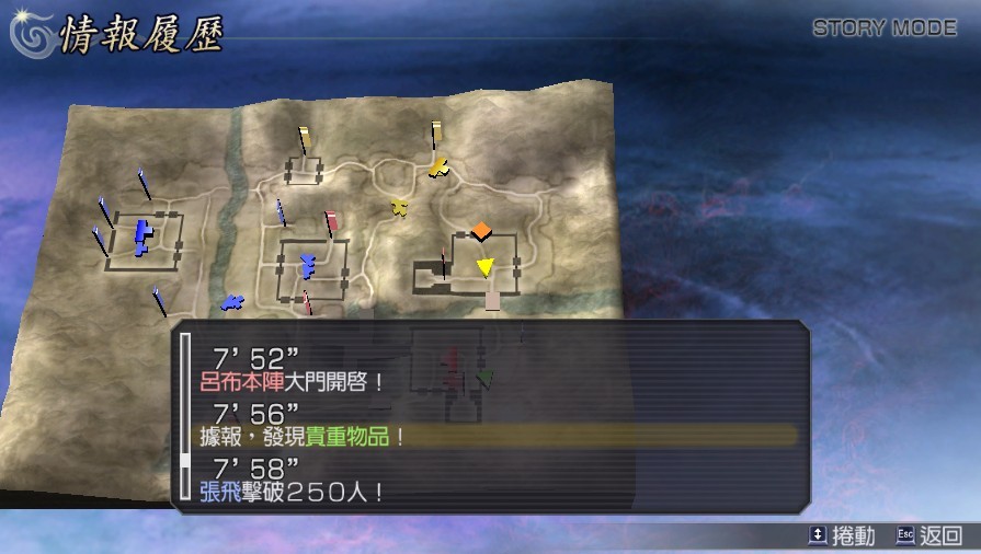 流程:开始后6分钟内开门,之后2分钟内玩家亲自击破妲己和卑弥呼,备注:开门的条件是太公望(NPC)到达中央门且门外的敌将全被击破,一开始先清光城外所有的武将(城内你要杀也杀不到),让太公望到达中央城门,我在5分50秒达成城门开启事件,之后进去迅速秒掉妲己跟卑迷呼,我是花了1分28秒,重要讯息出现