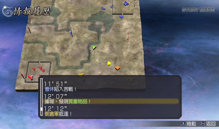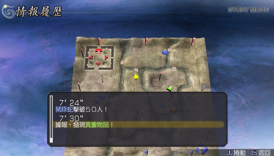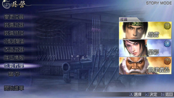“故事模式”每关操作武将都会变化,因而可以从各种各样不同的视角来体验各势力壮大的故事。一些大规模的战役会分割为前半部分和后半部分,比如蜀国长坂之战前半用的是赵云,后半用的是张飞。